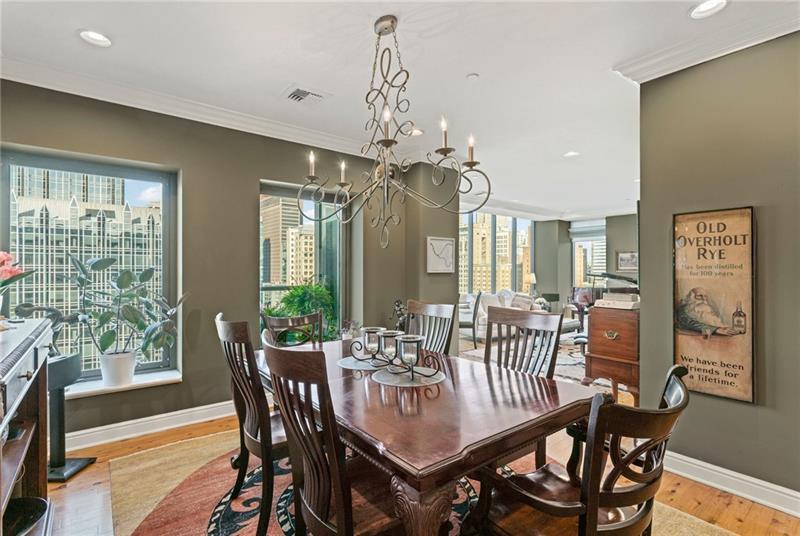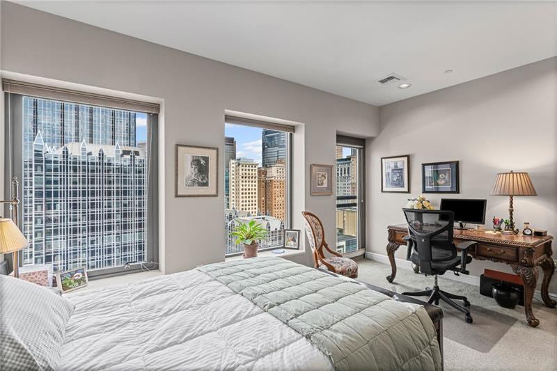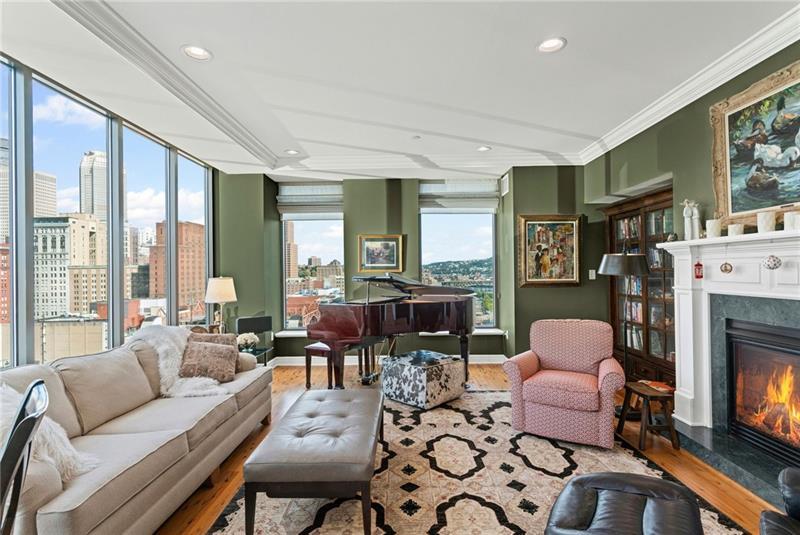 PANORAMIC CITY AND RIVER VIEWS greet you on the 16th floor of this luxury condo in a secure building! Enjoy a thoughtful floor plan (two shell units were combined before construction) with architectural details and upgrades, including Australian Cypress flooring and a gas fireplace. Two entrances, three bedrooms, two full bathrooms, a living room, dining area, and a den/family room provide ample space (2,266 SF) and stunning views from the expansive windows. The chef's kitchen opens to the living and dining rooms to create a bright, social space designed for both serious cooking and easy entertaining. At its center, a generous island provides ample prep space, seating for casual meals, and a natural gathering spot for guests. The walk-in pantry provides abundant storage to keep the space organized. Dining, cultural and sporting venues are steps away! Monthly HOA fee includes gas, water, sewage, trash, common area maintenance, fitness center, conference/meeting room, building management and 24/7 security. VIEW 3D TOUR AND VIDEO FOR A CLOSER LOOK!